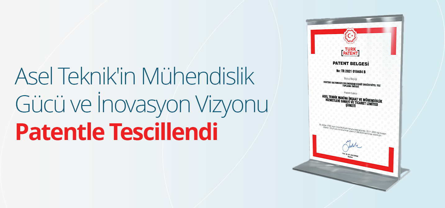 Yoğun Ar-Ge çalışmalarımız sonucunda geliştirdiğimiz “Vorteks Salyangozu Bulunduran Hibrit Endüstriyel Toz Toplama Ünitesi” başlıklı buluşumuz, Türk Patent ve Marka Kurumu tarafından TR 2021 018484 B numarası ile tescillenmiştir.