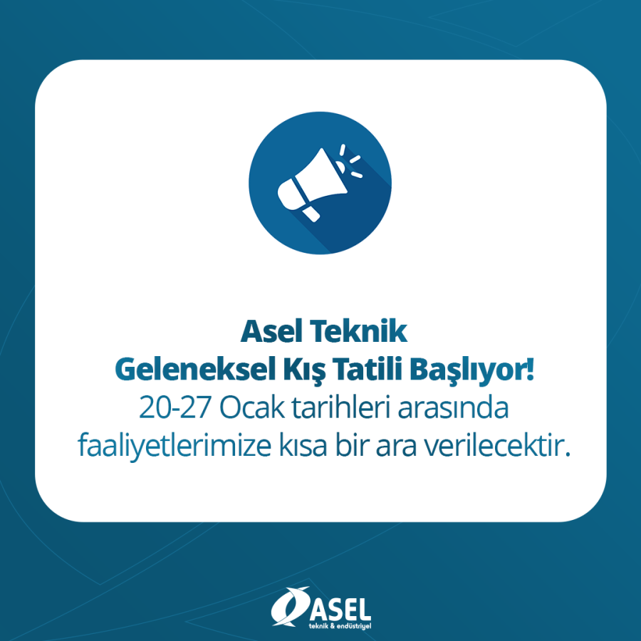 Asel Teknik olarak, her yıl olduğu gibi 20 – 27 Ocak…
